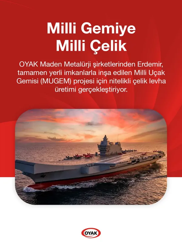 ANKARA (İGFA) - Türkiye’nin savunma sanayisinde stratejik öneme sahip Milli Uçak Gemisi (MUGEM) projesinde kritik bir adım daha atıldı. Geminin inşasında kullanılacak yaklaşık 40 bin ton gemi sacı, OYAK’a bağlı Türkiye’nin lider entegre çelik üreticisi Erdemir tarafından tedarik edilecek.