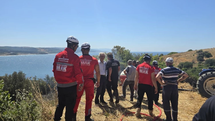 Yangını fark eden bölge halkı, tarımsal sulama için kullanılan mobil su tankerleriyle ilk müdahaleyi yaptı.