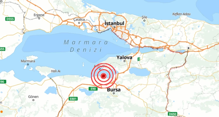 Kandilli Rasathanesi verilerine göre merkez üssü Bursa'nın Mudanya ilçesinde 3,4 büyüklüğünde deprem oldu.