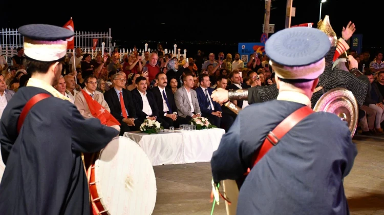 Vatandaşların yoğun ilgi gösterdiği etkinlikte, mehteran takımı marşlarla coşkuyu artırdı.