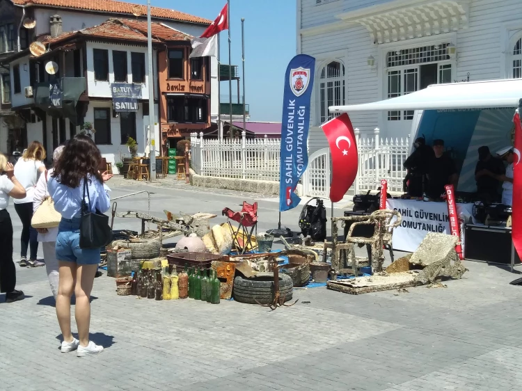 5 Haziran Dünya Çevre Günü dolayısıyla Mudanya’da Sahil Güvenlik Komutanlığı'na bağlı dalgıçlar tarafından yapılan deniz dibi temizliğiyle bin 700 kilogram katı atık toplanarak, toplananlar Mütareke Meydanı’nda sergilendi.