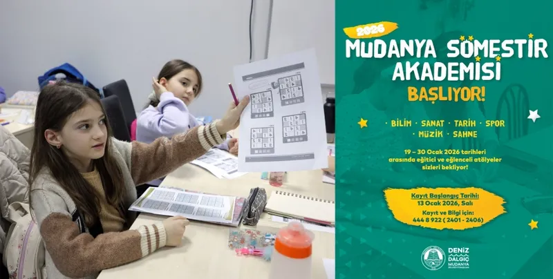 Mudanya Belediyesi, 2025–2026 eğitim-öğretim yılı yarıyıl tatilinde çocuklara hem eğlenceli hem de öğretici bir program sunuyor. 19–30 Ocak tarihleri arasında düzenlenecek Mudanya Sömestir Akademisi; bilim, sanat, müzik, spor, doğa ve kent hafızası başlıkları altındaki atölyelerde çocukları buluşturacak.