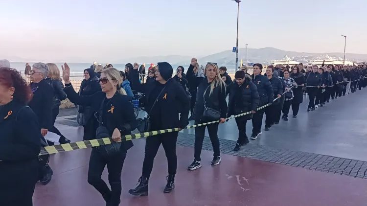 BURSA (İGFA) - Bursa'nın Mudanya ilçesinde Kent Konseyi Kadın Meclisi koordinasyonunda 16 sivil toplum kuruluşunun kadın temsilcileri ve çok sayıda yurttaş, 25 Kasım Kadına Yönelik Şiddete Karşı Uluslararası Mücadele Günü dolayısıyla siyah kıyafetlerle sessiz yürüyüş gerçekleştirdi. İskele Meydanı’nda buluşan kalabalık, İnönü Bulvarı boyunca “Kadın, Yaşam, Özgürlük” sloganlarıyla Mütareke Meydanı'na omuz omuza yürüdü.