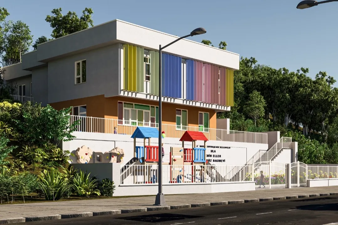 Ula Belediyesi’nden tahsisli alana yapılacak Muğla Büyükşehir Belediyesi Gündüz Bakımevi Ayazkızı Mahallesi’nde 642 metrekare alanda hayata geçiriliyor. Ula ilçesine yapımına başlanan Gündüz Bakımevi projesi taşıt trafiği yoğunluğundan ve gürültüsünden uzak, korunaklı, doğa ile iç içe konumlanmış bir alana inşa ediliyor. Gündüz bakımevi olarak tasarlanan projede alt katta idari ofisler ve yemekhane, üst katta ise sınıflar yer alacak.Gündüz Bakımevi projesi ile dezavantajlı bireylerin de kullanımına uygun olacak şekilde planlandı ve 65 çocuk kapasiteli olacak. Ayrıca yapı, çocukların her katta açık ve kapalı mekan kullanımına imkan sağlayacak şekilde optimum fayda gözetilerek planlandı.