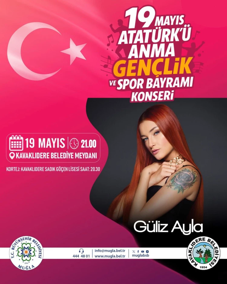 Muğla Büyükşehir Belediyesi, Ulu Önder Gazi Mustafa Kemal Atatürk’ün Türk gençliğine armağanı olan 19 Mayıs Atatürk’ü Anma, Gençlik ve Spor Bayramı’nı birbirinden renkli konser etkinlikleriyle kutlayacak.