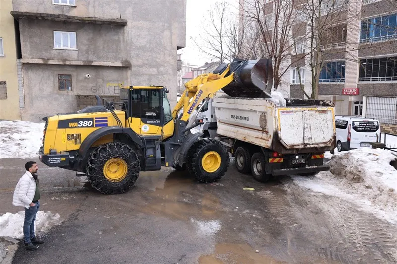 Muş Belediyesi, aralıklarla etkisini gösteren kar yağışına karşı kent genelinde kar temizleme çalışmalarını sürdürüyor.