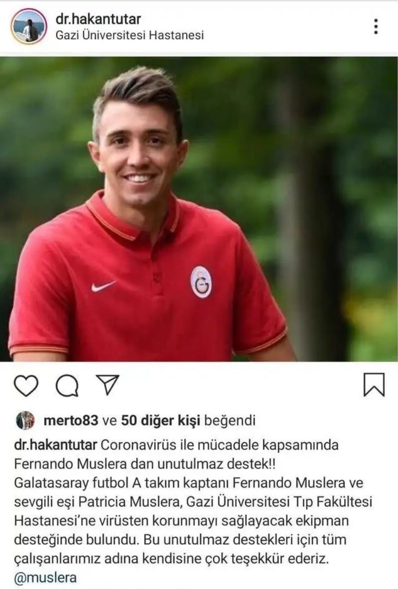 Konu hakkında sosyal medya hesabından açıklama yapan Gazi Üniversitesi Hastanesi Başhekim Yardımcısı Dr. Hakan Tutar, "Fernando Muslera ve eşi Patricia Muslera, Gazia Üniversitesi Tıp Fakültesi’ne virüsten korunmayı sağlayacak ekipman desteğinde bulundu. Bu unutulmaz destekleri için tüm çalışanlarımız adına kendisine teşekkür ederiz" ifadelerini kullandı.