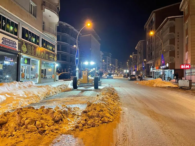 Muş Belediyesi ekipleri, günlerdir gece geç saatlere kadar karla mücadele çalışmalarını aralıksız sürdürüyor.
