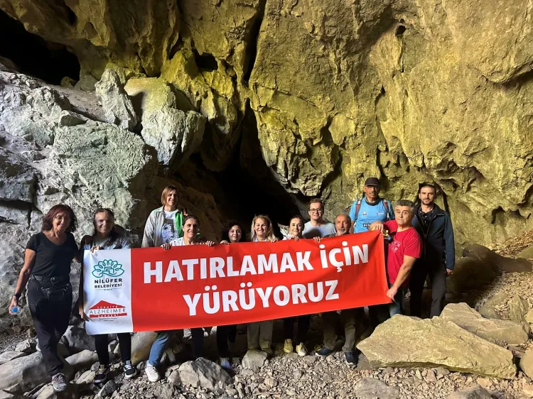 BURSA (İGFA) - “Dünya Alzheimer Ayı” etkinlikleri çerçevesinde Nilüfer Belediyesi ve Alzheimer Derneği Bursa Şubesi iş birliğiyle Mysia Yolları parkurunda doğa yürüyüşü düzenlendi. Kadriye Mahallesi’nden başlayan yürüyüşte katılımcılar, doğanın güzelliklerini keşfederek Deliklitaş Mağarası’na ulaştı.