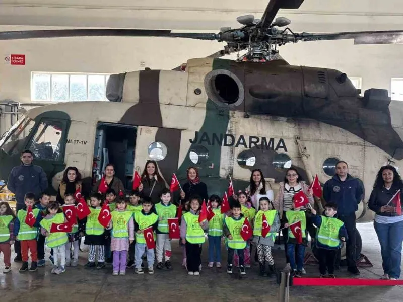 Latife Hanım Anaokulu öğrencileri, Aydın Jandarma Filo Komutanlığı'nı ziyaret etti. Öğrenciler, komutanlık envanterindeki helikopterler ve insansız hava araçlarını yakından görme fırsatı buldu.