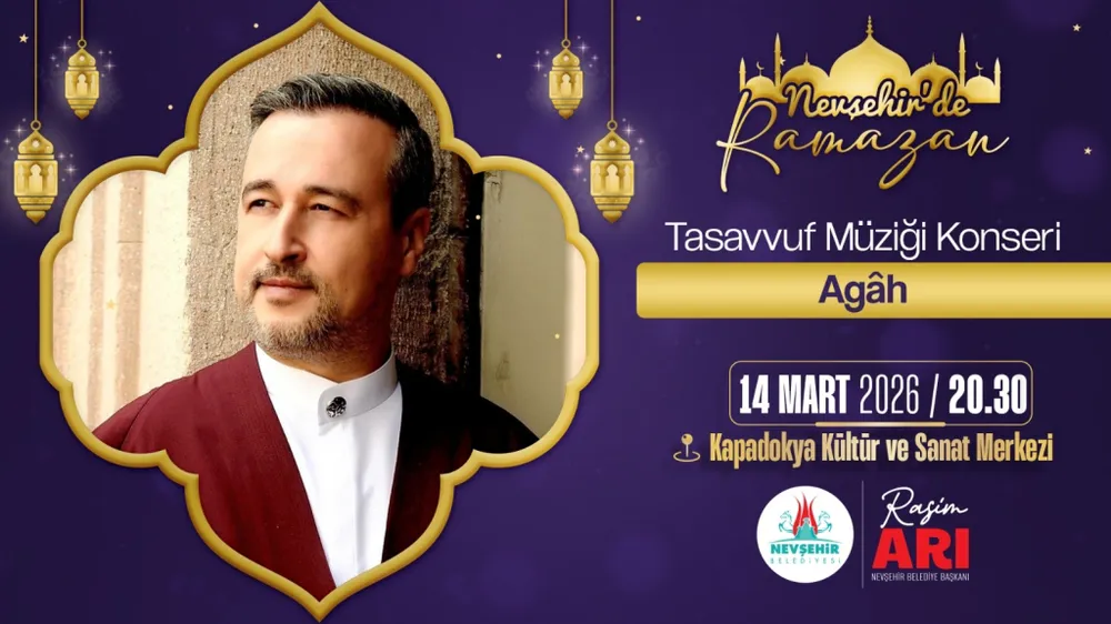 Nevşehir Belediyesi, Ramazan ayına özel düzenlediği etkinlikler kapsamında bu akşam tasavvuf musikisi sanatçısı Agâh'ı ağırlayacak. Sanatçı, güçlü sesi ve etkileyici yorumuyla dinleyicilere sanatsal ve manevi bir müzik ziyafeti sunacak.