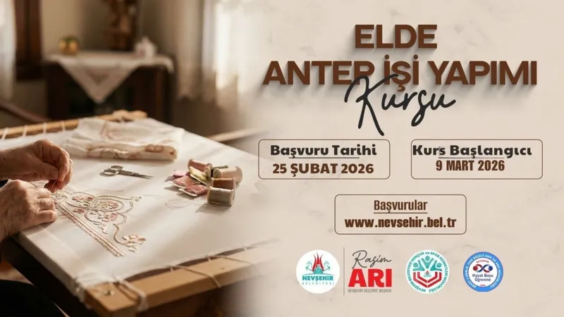 Nevşehir Belediyesi ile Nevşehir Şehit J. Onb. Muhammet Can Biçici Halk Eğitim Merkezi iş birliğinde düzenlenen kurs, alanında uzman eğitmenler tarafından verilecek. Kurs, her yaş grubundan katılımcılara Milli Eğitim Bakanlığı (MEB) onaylı sertifika alma imkanı sağlıyor. Kayıtlar 25 Şubat 2026 Çarşamba günü başladı.