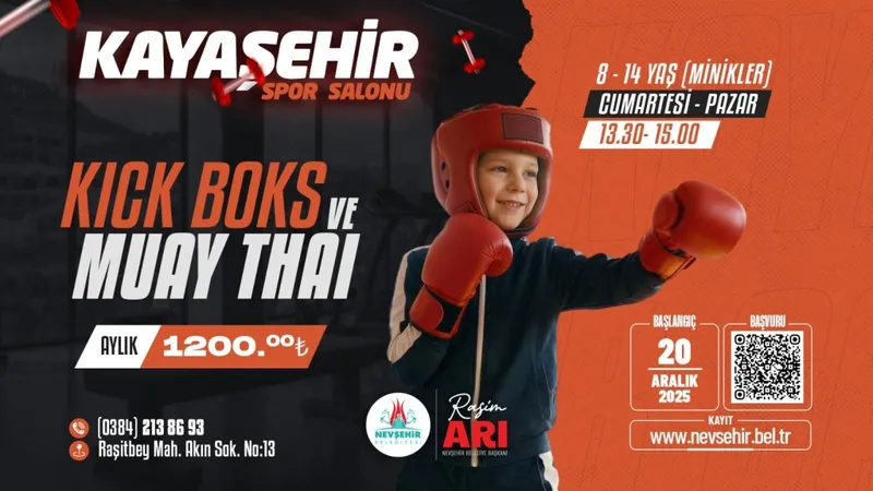 Belediye bünyesinde hizmet veren Kayaşehir Spor Salonu'nda 8-14 yaş ile 15 yaş ve üzeri bireylere yönelik Kick Boks ve Muay Thai kursları açılacak. Ön kayıtlar, Nevşehir Belediyesi Gençlik ve Spor Hizmetleri'nin kurs başvuru ekranından, Kayaşehir Spor Salonu seçilerek yapılabilecek.