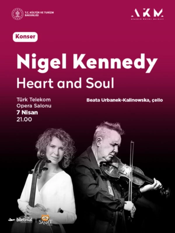 Besteci, keman virtüözü orkestra şefi ve festival küratörü Nigel Kennedy, farklı stilleri birbirleriyle harmanlayan tarzıyla tüm dünyada ses getiren konserlerine Türkiye ile devam ediyor. Vivaldi’nin "Dört Mevsim" eserini çaldığı albümü, 2 milyon satışa ulaşan ve Guiness Rekorlar Kitabı’na dünyanın en çok satan klasik müzik albümü ile adını yazdıran Nigel Kennedy, 7 Nisan’da İstanbul Atatürk Kültür Merkezi sahnesinde sevenleriyle buluşacak. Klasik, caz, klezmer, rock ve çok daha fazlasını kapsayan geniş repertuarı ile sınırlar ötesi müzikal yolculuğun öncülerinden Kennedy, “Heart and Soul” performansıyla unutulmaz bir müzik ziyafetine imza atacak. Nigel Kennedy, 7 Nisan’daki programında Bach’ın eserlerinin yanı sıra modern zamanların iki büyük klavye sanatçısı ve bestecisi Krzysztof Komeda ile geçtiğimiz yıl hayatını kaybeden Ryiuchi Sakamoto’nun keman ve çello için sevilen diğer parçalarının yanı sıra kendi bestelerine yer verecek. Keman, çello ve zaman zaman piyanonun eşlik ettiği, sadece iki müzisyenin performans sergileyeceği konserin biletleri Biletinial’da satışa çıktı.
