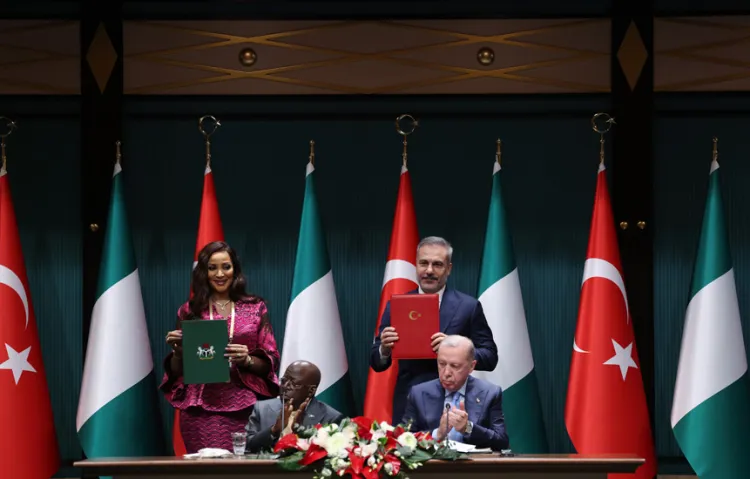 Cumhurbaşkanı Recep Tayyip Erdoğan, ülkemize ilk resmî ziyaretini gerçekleştiren Nijerya Cumhurbaşkanı Bola Ahmed Tinubu ve heyetini Ankara’da ağırlamaktan memnuniyet duyduğunu açıkladı. Erdoğan, Nijerya’nın 230 milyonluk nüfusuyla Sahraaltı Afrika’daki en yakın ticaret ortaklarından biri olduğunu vurguladı.