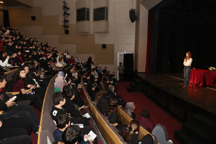 BURSA (İGFA) - Bursa'da Nilüfer Belediyesi’nin “Çocuklara Kitap Söyleşileri”nin konuğu Bursalı yazar Melis Sena Yılmaz oldu. Nazım Hikmet Kültürevi’nde gerçekleştirilen etkinlikte ortaokul öğrencileri, yazar Yılmaz’a kitaplar ve yazarlık ile ilgili sorular sordu.
