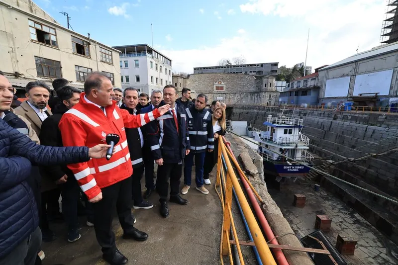 İBB Başkanvekili Nuri Aslan, Haliç Tersanesi, Kuyumcu Han ve İstanbul Sinema Ofisi’nde incelemelerde bulundu. Tersanede üretim, bakım ve revizyon çalışmalarının sürdüğünü belirten Aslan, “Mevcut ekipmanı elden geçiriyor, revize ediyor ve sıfırmış gibi yeniden hizmete sunuyoruz. Çünkü milletin malını korumak bizim birinci görevimiz” dedi. Tersanenin yalnızca üretim alanı değil aynı zamanda kültür ve sanat faaliyetlerinin yürütüldüğü bir merkez haline geldiğini belirten Aslan, “Hem tarihimize hem kültürümüze hem sanatımıza sahip çıkıyoruz” ifadelerini kulandı.
