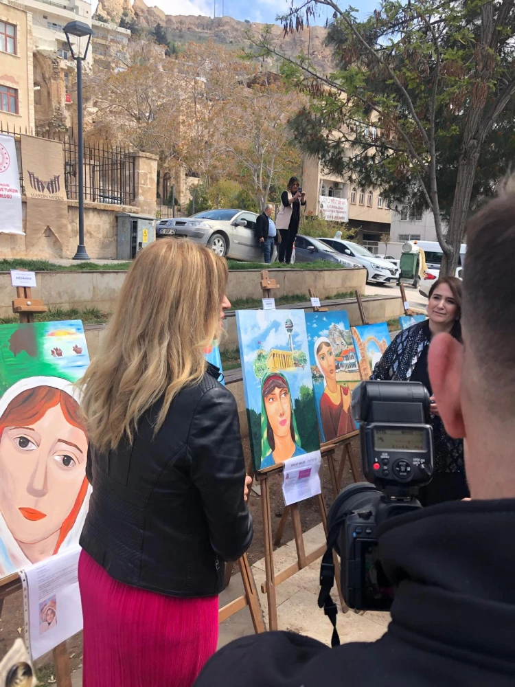 MARDİN (İGFA) - Mardin’de, 15-22 Nisan Turizm Haftası kapsamında Mardin Müzesi önünde açılan sergide, 81 ilin sanat öğretmenleri, figüratif tarzda eserler üreten, özellikle Anadolu insanını resmetmesiyle tanınan bir sanatçı olan Nuri İyem’in kadın portrelerini şehirlerinin tarihi ve kültürel dokusuyla harmanladı.