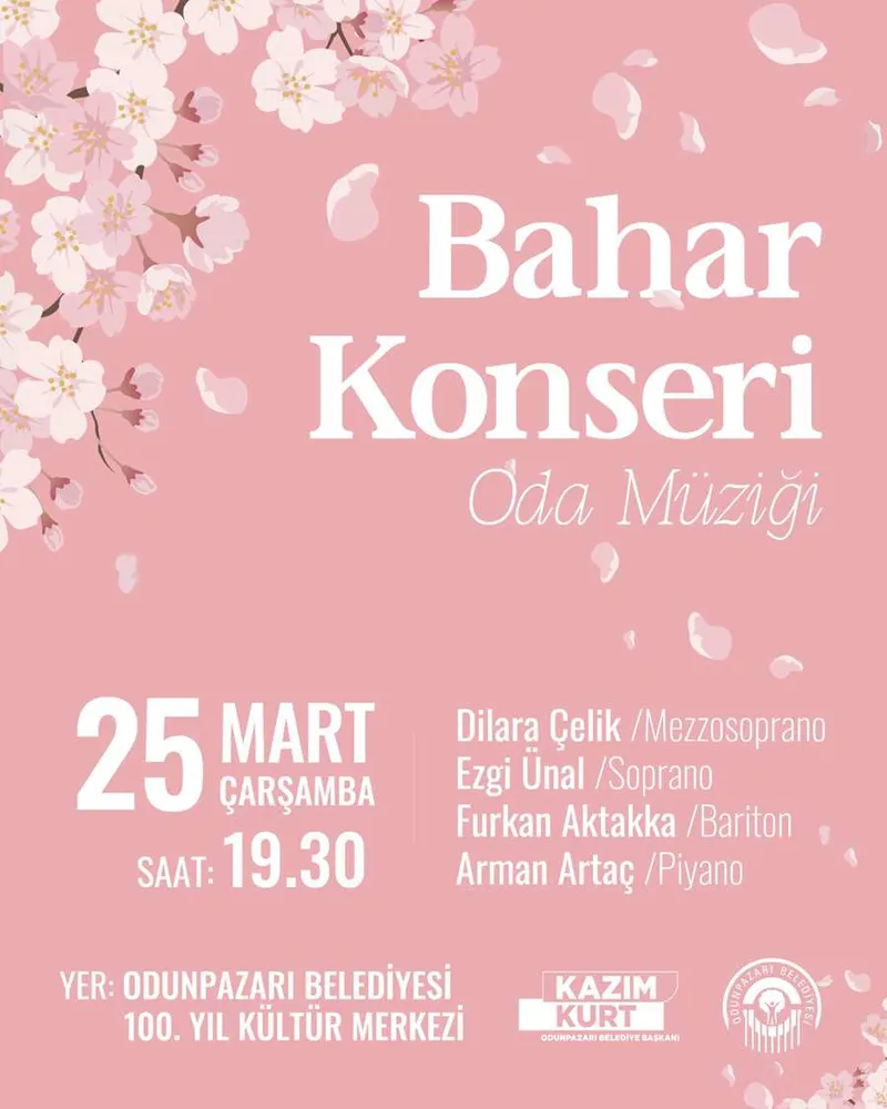 Konser, 25 Mart Çarşamba günü saat 19.30'da, Odunpazarı Belediyesi 100. Yıl Kültür Merkezi'nde gerçekleştirilecek. Etkinlik, baharın gelişini müzikle karşılamayı amaçlıyor.