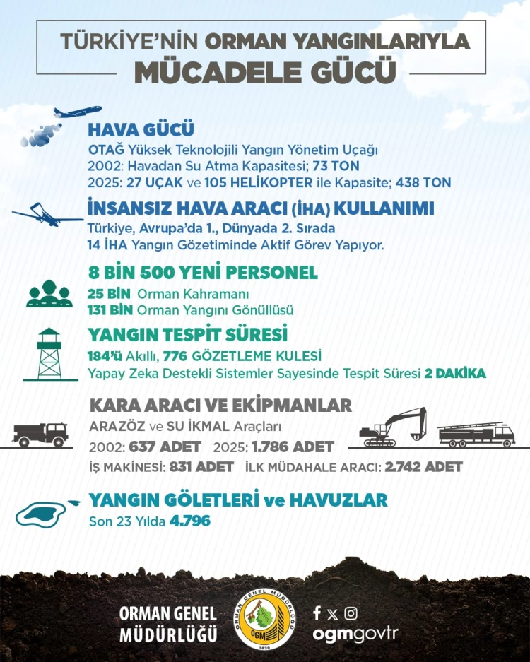 ANKARA (İGFA) -Orman Genel Müdürlüğü (OGM), Türkiye’nin orman yangınlarıyla mücadeledeki gücünü ve stratejisini açıklayan bir paylaşımda bulundu.