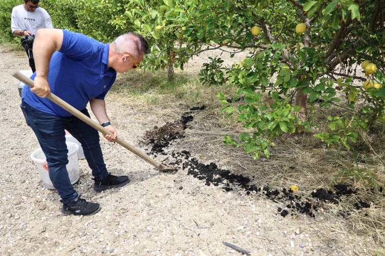 ANTALYA (İGFA) - Antalya Büyükşehir Belediyesi’nin entegre tesislerinde organik atığın işlenmesi sonucu oluşan Katı ve Sıvı Fermente Ürün ve Ph düzenleyici ürünlerin denemeleri yapıldı. Evsel katı atıklarından oluşan toprak iyileştirici ürünlerin kullanımı için Alanya, Aksu, Kumluca ve Demre pilot ilçeler olarak seçilirken, proje ilk olarak Demre’de bir limon bahçesinde uygulandı.