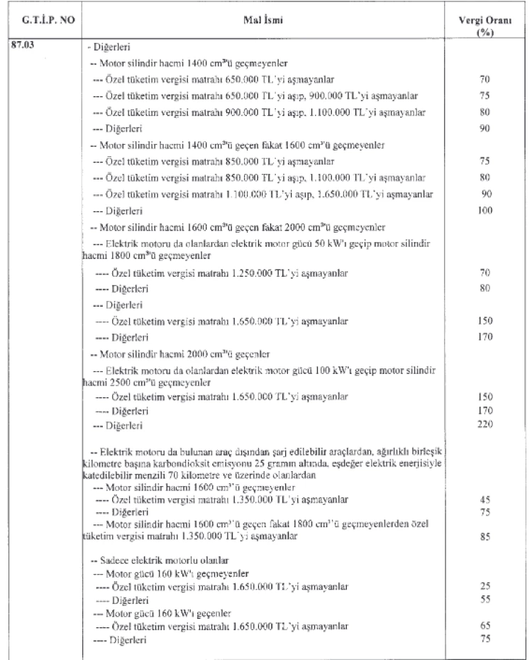 Karar, özellikle motorlu taşıtlar kategorisindeki 87.03 G.T.İ.P. numaralı malları kapsadı.