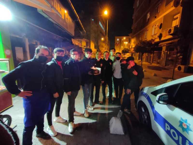 Beyoğlu Hasköy’de bir grup genç, Türk Polis Teşkilatı’nın kuruluşunun 176. yıl dönümü nedeniyle 155’e kavga ihbarında bulundu. İhbar üzerine olay yerine gelen Beyoğlu Devriye Ekipler Amirliği görevlilerine gençler pastayla sürpriz yaptı. Asılsız ihbarda bulunan gençlerin sürpriz yaptığı o anlar cep telefonu kamerasına yansıdı.