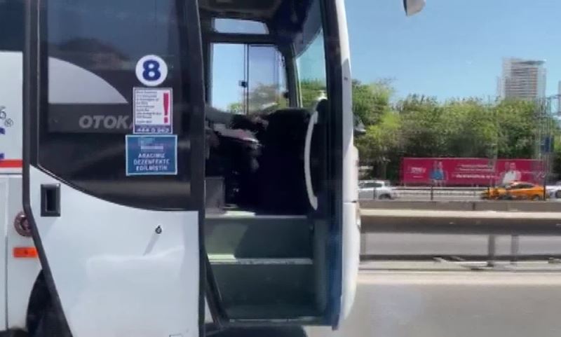 E-5 karayolu Kadıköy mevki’inde seyir halinde olan bir midibüs kapısı açık halde ilerledi. Kapısı açık ilerleyen midibüs, görenleri adeta şaşkına çevirdi.
