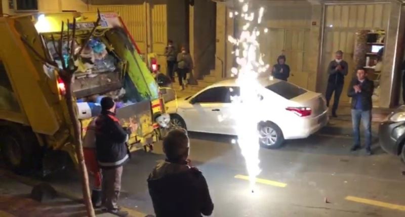 Esenler’de vatandaşlar, ilçede görev yapan temizlik işçilerine sürpriz yaptı. Bir anda işçilerle birlikte çöpleri arabaya yüklemeye başlayan gençler, müzik eşliğinde maytap yakarak temizlik görevlilerini alkışladı. Mahalleli kadınlar ise görevlilere iftar sonrası yemek ikram etti.