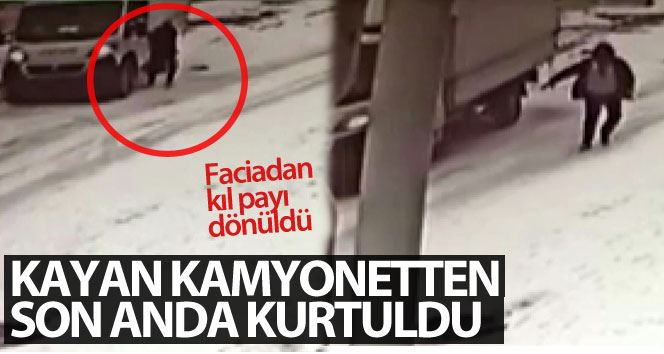 Esenyurt’ta yoğun kar yağışı sonrası yokuş aşağı giden yolda kamyoneti kayan sürücü, direksiyondan atlayarak aracını tutmaya çalıştı. Yaşanan anlar güvenlik kamerası tarafından kaydedilirken kamyonet devrildi, vatandaşlar ise faciadan kaçarak kurtuldu.