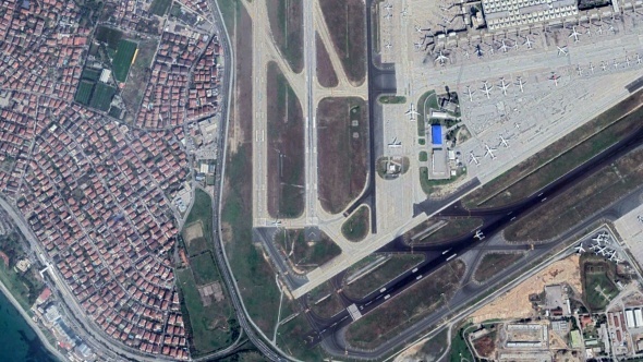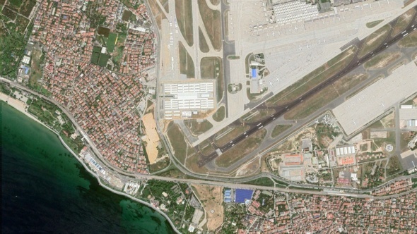 Hastanenin yapım aşamaları ise uzaydan görüntülendi. İlk fotoğrafta hiçbir çalışmanın olmadığı hatta uçakların pisti görülüyor.