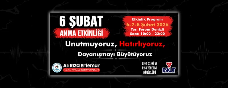 Pamukkale Belediye Başkanı Ali Rıza Ertemur, yaptığı açıklamada, "6 Şubat'ta yaşanan büyük felaketin acısı hala yüreğimizde taze. Kaybettiğimiz canları ve o gün sergilenen muazzam dayanışmayı unutmadık. Pamukkale Belediyesi olarak hem hatıraları yaşatmak hem de gelecekteki olası afetlere karşı farkındalık oluşturmak için tüm hemşehrilerimizi Forum Denizli'ye bekliyoruz" ifadelerini kullandı.