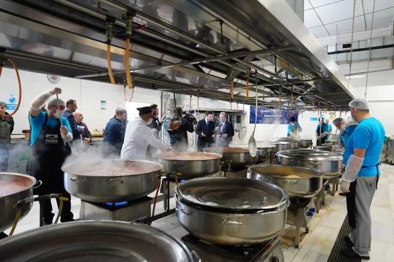 Pendik’te Ramazan ayının dayanışma ve paylaşma ruhu ilçenin dört bir yanına taşınmaya devam ediyor. Pendik Belediyesi tarafından her gün Sahil Meydanı’nda ve Millet Bahçesi’nde kurulan iftar sofralarında yaklaşık 15 bin kişi aynı sofrada buluşarak oruçlarını açıyor. İftar sofralarındaki sıcak yemekler belediyeye ait aşevindeki dev kazanlarda pişiyor. Tüm yemekler hijyen ve kalite standartlarına uygun şekilde hazırlanıyor. Titizlikle hazırlanan yemekler, ekipler tarafından adreslere teslim edilerek Ramazan ayının bereketi ve dayanışma ruhu ihtiyaç sahiplerine ulaştırılıyor.