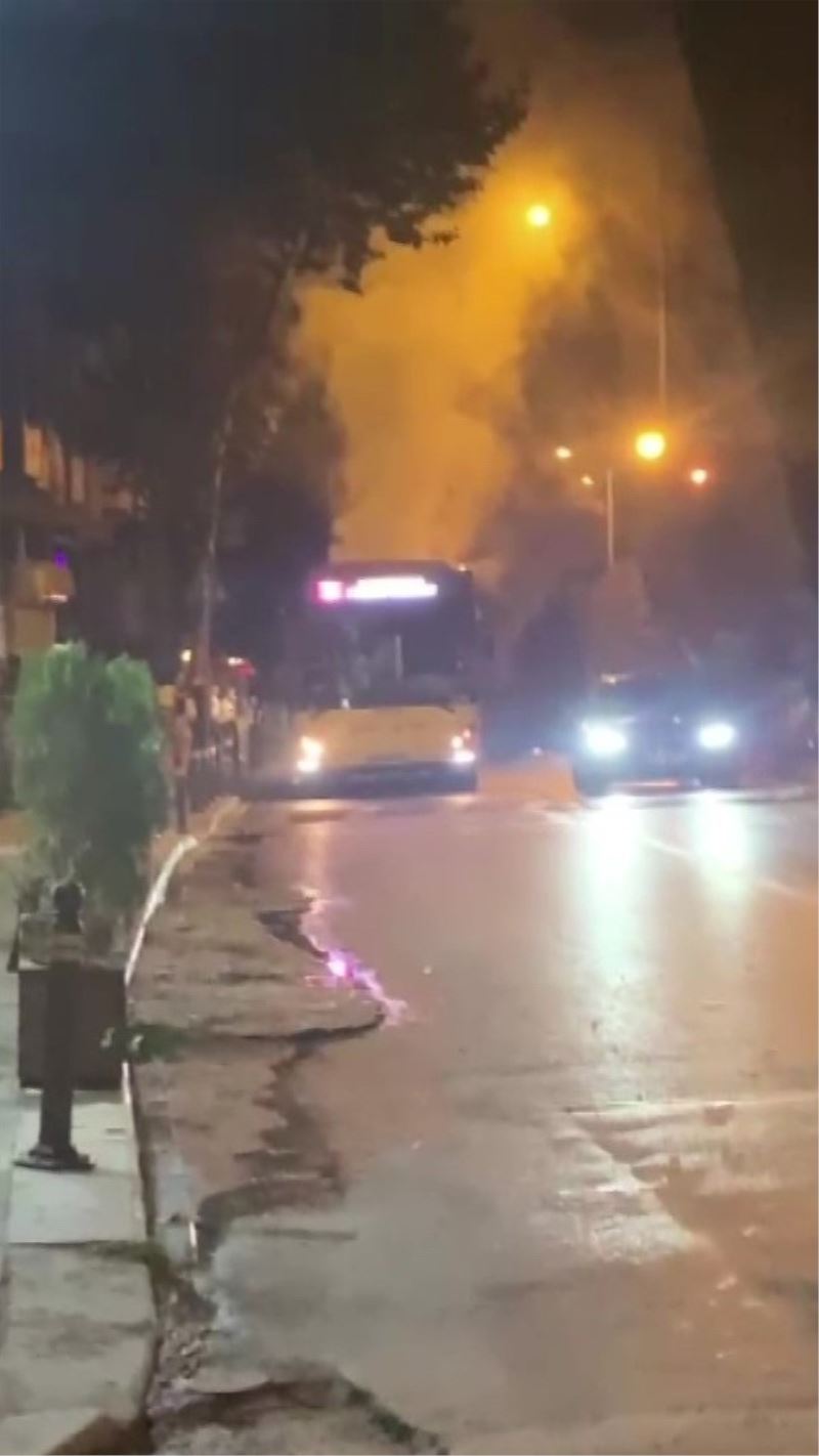 İETT otobüsünden dumanların yükseldiği anlar vatandaşın cep telefonu kamerasına yansıdı.