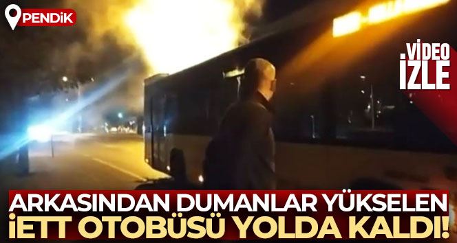 Olay, Pendik, Şeyhli Mahallesinde dün akşam saatlerinde yaşandı. İddiaya göre seyir halinde olan KM25 numaralı hatta çalışan İETT otobüsünün arka kısmından dumanlar yükselmeye başladı. Durumu fark eden otobüs şoförünün otobüsü yolun kenarına çekmesiyle otobüste bulunan yolcular aşağıya indi. Olayı fark eden çevredeki vatandaşlar da otobüsün yanına geldi. Otobüste yaşanan arıza nedeniyle otobüs seferine devam edemedi.