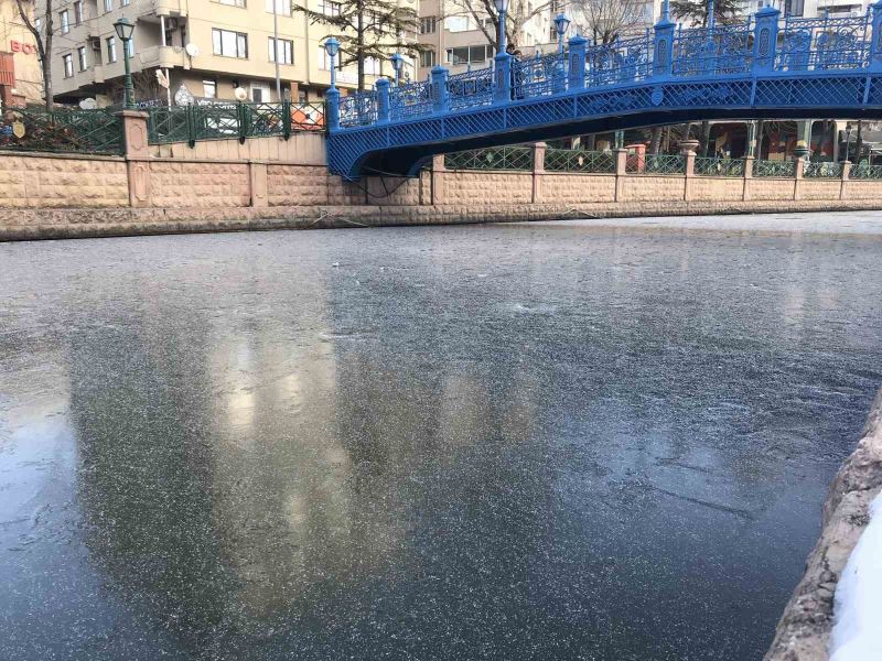Eskişehir’de etkili olan soğuk hava, porsuk çayının yüzeyini yeniden dondurdu.