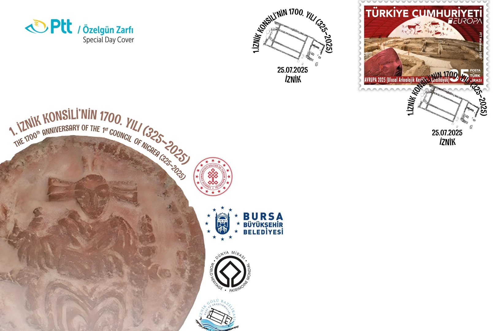 PTT AŞ tarafından “1. İznik Konsili'nin 1700.Yılı” konulu özelgün zarfı 25 Temmuz 2025 tarihinde tedavüle sunuldu.