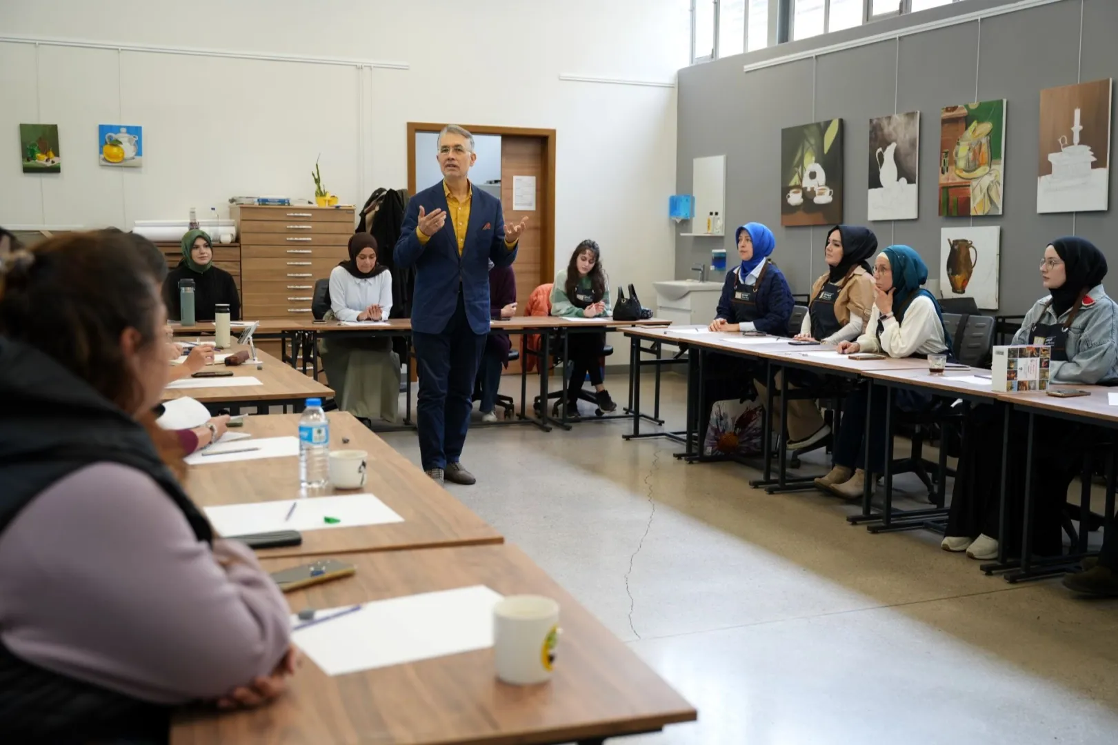 Günler öncesinden dolan master class eğitimi Seka Sanat İhtisas Merkezi’nin eğitim atölyesinde gerçekleştirildi. Üst düzeyde resim bilgisi olan vatandaşların katıldığı eğitimde ilk olarak, sanatın insan hayatına yönelik olumlu etkileri üzerinde duruldu. Ressam Cemal Toy, eğitime katılan sanatseverlere nefes teknikleri uygulattı. Katılımcılar, bu sayede sanatı bir terapi aracı olarak deneyimleme şansı yakaladı. Bunun yanı sıra renklerin, dokuların ve ifadelerin iyileştirici gücü de hep birlikte keşfedildi.