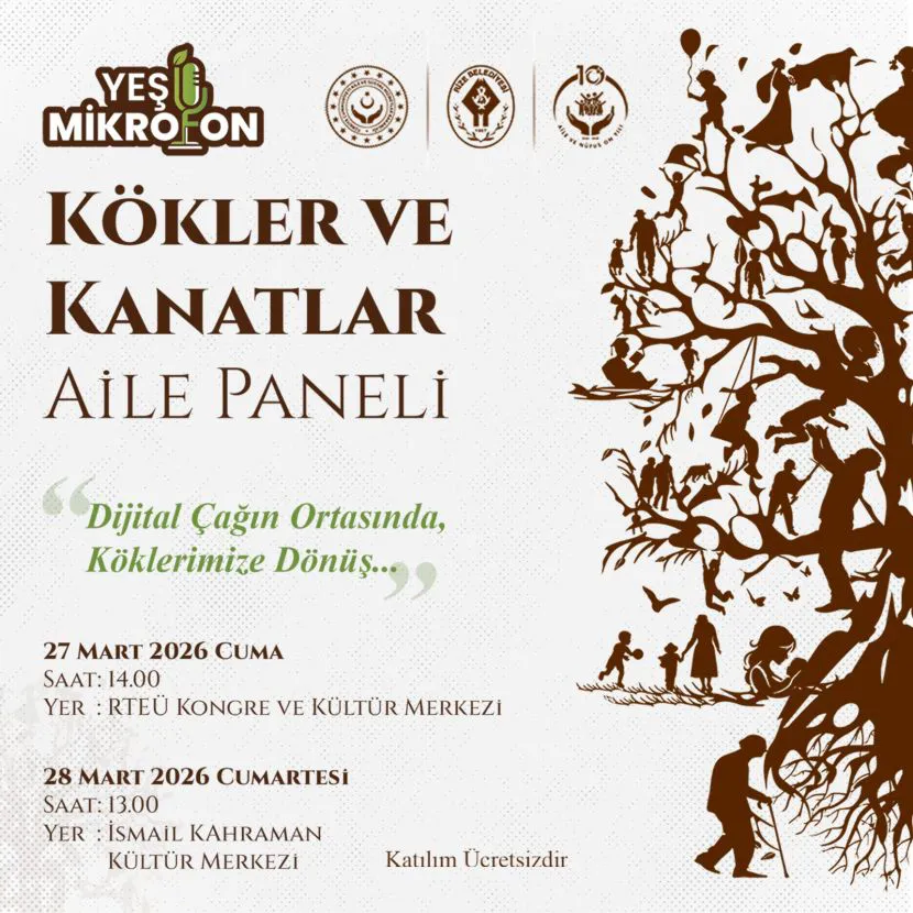 Rize Belediyesi'nin öncülüğünde düzenlenen "Yeşil Mikrofon - Kökler ve Kanatlar: Aile" paneli, 27-28 Mart 2026 tarihlerinde gerçekleştirilecek.