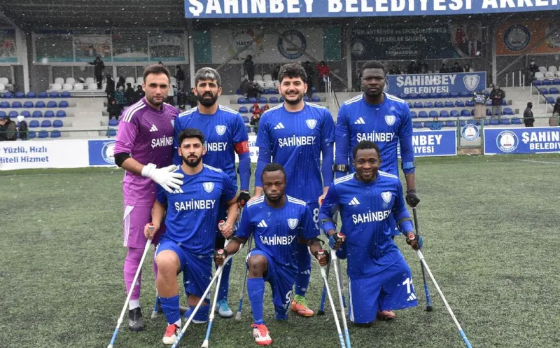 Şahinbey Belediye Spor Kulübü Ampute Futbol Takımı, kendi sahasında TSK Rehabilitasyon Merkezi Engelli Spor Kulübü Ampute Futbol Takımı'nı 7-0 mağlup etti. Bu galibiyetle takım, ligde şampiyonluk yolunda önemli bir adım daha attı.