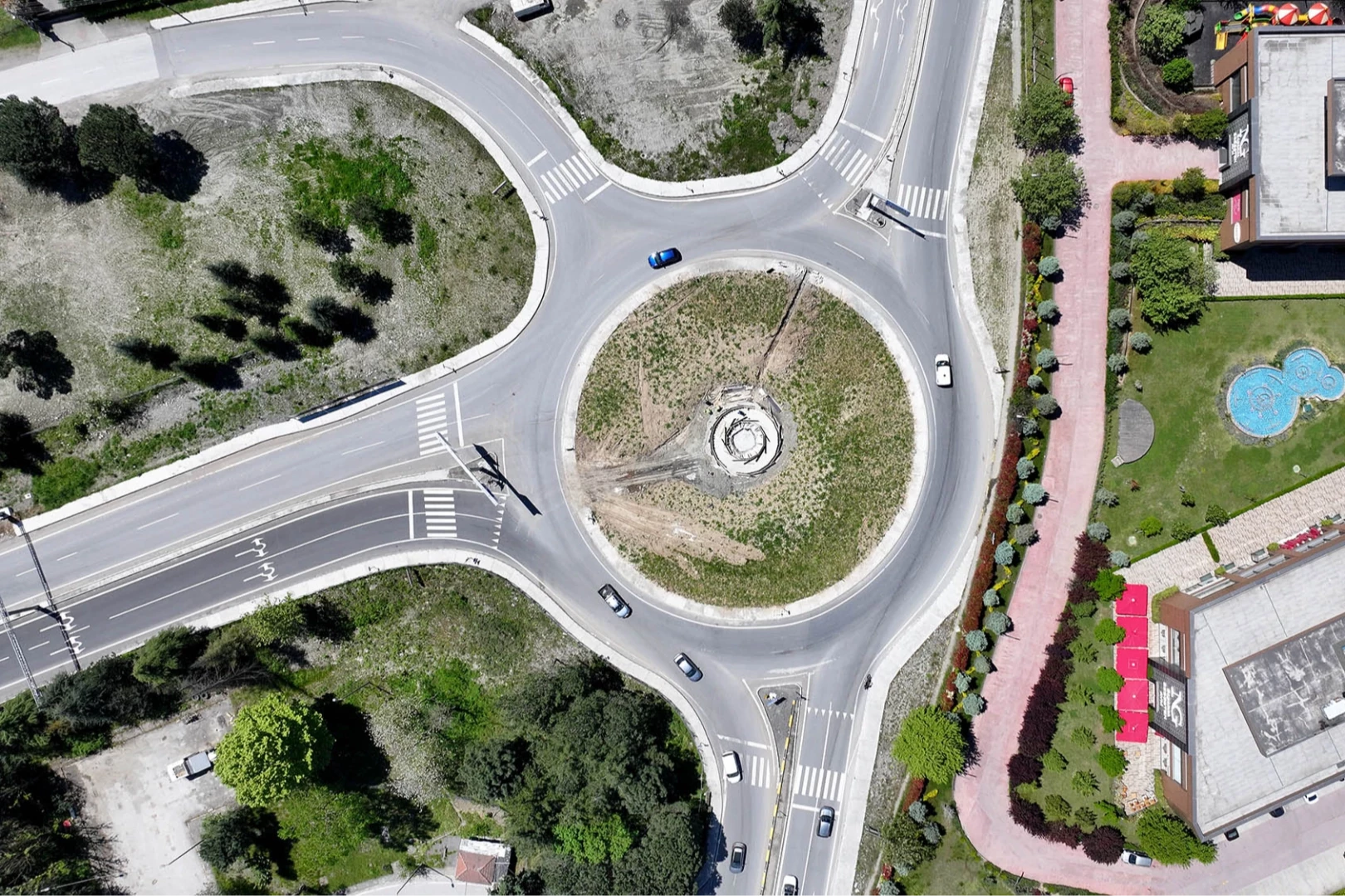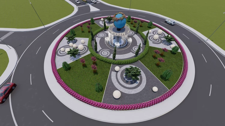 Kavşağın merkezinde yer alan kuru havuz sistemi, suyun dinlendirici etkisini yansıtan modern bir tasarım anlayışıyla bütünleşecek.