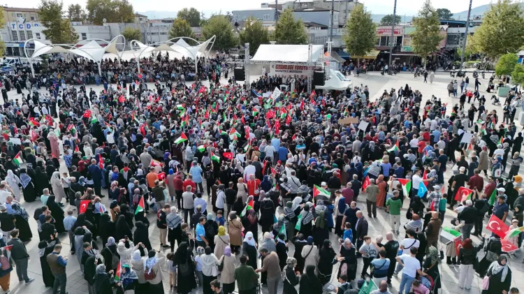 Sakarya Millet Bahçesi'nde bir araya gelen binlerce kişi ellerinde Filistin bayraklarıyla, “Özgür Filistin” ve “Kahrolsun İsrail” gibi sloganlarla şehrin merkezinde yürüdü.
