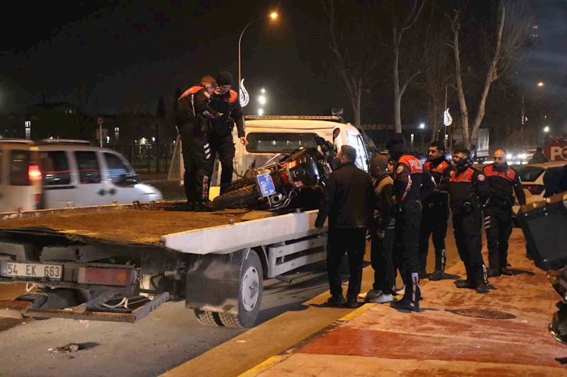 Yazlık Caddesi üzerinde meydana gelen ilginç kazada, çekicinin üstünde taşınan polis motosikleti yan yattı, motosikleti tutmak isteyen polis memuru ise dengesini kaybederek çekiciden düşerek yaralandı. Durumun haber verilmesi üzerine bölgeye sağlık ve polis ekipleri sevk edildi. Hafif yaralanan polis memuru ilk müdahale sonrasında Serdivan İlçe Devlet Hastanesi’ne sevk edildi. Olaya ilişkin inceleme başlatıldı.