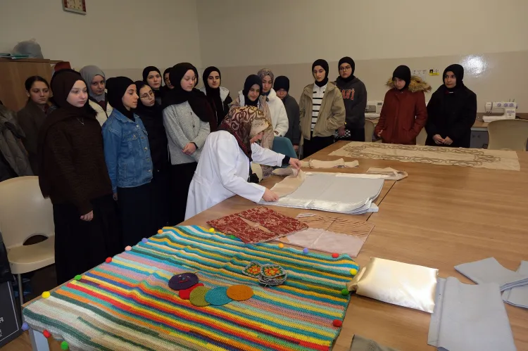 Ziyaret kapsamında iğne oyası ve çeyiz branşlarını da gezen öğrenciler, SAMEK’lerde sunulan eğitim içeriklerini yerinde görme imkânı elde etti.