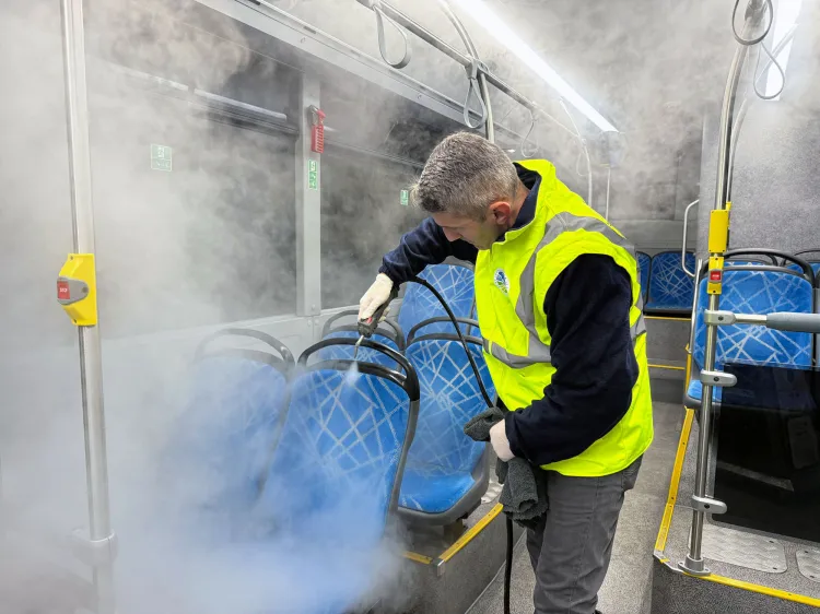 Büyükşehir ekiplerinin düzenli ve titiz temizlik çalışmaları sayesinde belediye otobüsleri hem gözle görülen hem de gözle görülmeyen kirlerden arındırılarak ulaşımda hijyen ve güvenlik standartlarını en üst seviyeye taşınıyor.