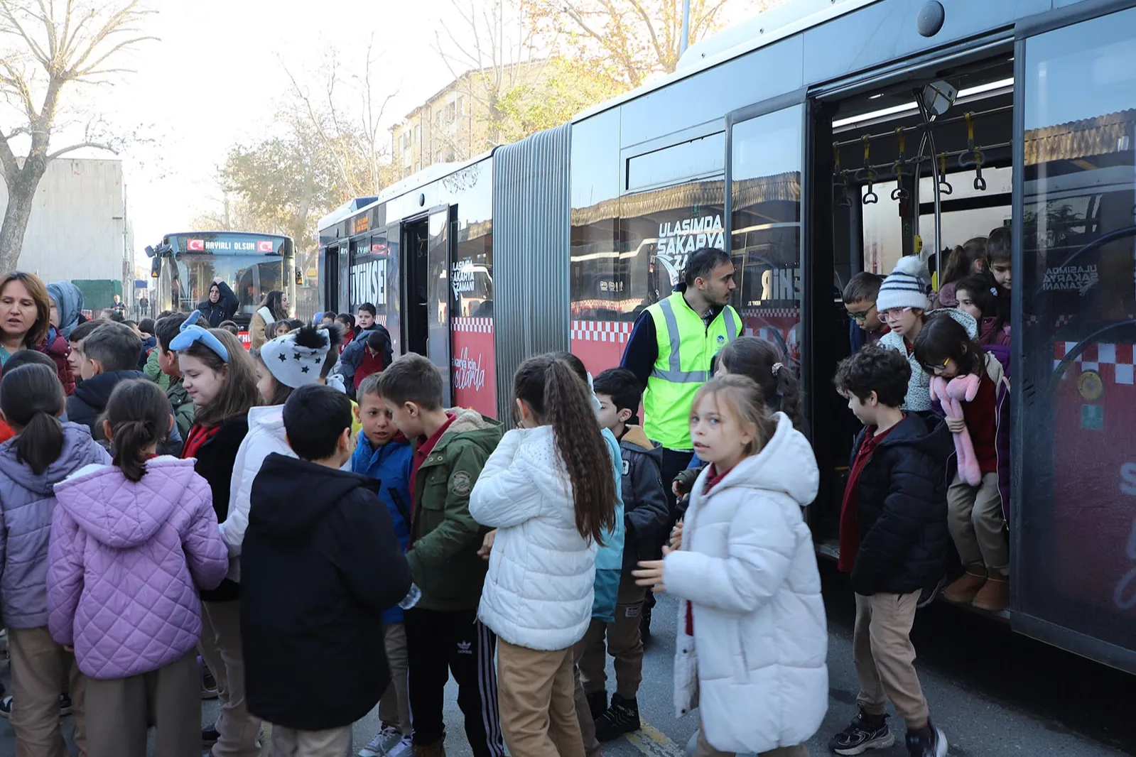 Bu kapsamda Adapazarı Eser İlkokulu’ndan yaklaşık 500 öğrenci, Büyükşehir Belediyesi’nin ulaşım yatırımları arasında yer alan ADARAY ve metrobüsle düzenlenen gezi programına katıldı.
