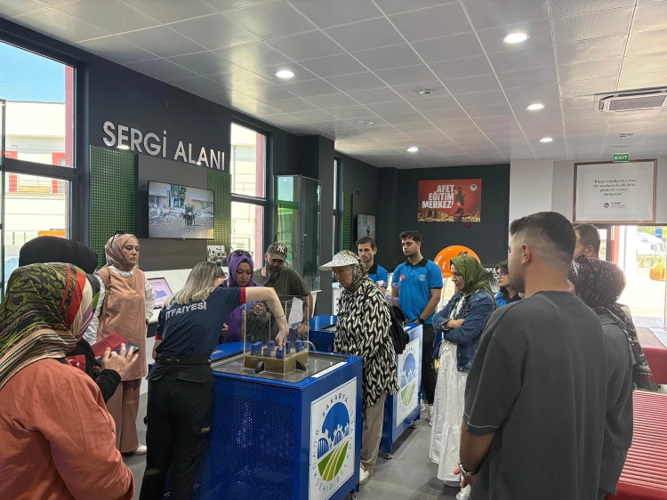 Eğitim programının devamında, Afet Eğitim Merkezi’ndeki sergi alanındaki, dokunmatik ekranlarla geçmiş afetlere dair gazete kupürleri incelendi. 112 acil arama simülasyonu ve test kiosklarıyla katılımcılar bilgilerini sınayarak doğru ihbar yöntemlerini deneyimledi.
