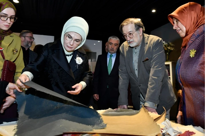 Açılış öncesinde Asitane Vakfı Başkanı Hasibe Nurhayat Turan, Emine Erdoğan’a sergi hakkında bilgiler verdikten sonra günün anısına atık kâğıtlardan yapılmış çiçek şeklinde broş hediye etti. Serginin açılışını kurdele keserek yapan Emine Erdoğan'a; Afşin Belediye Başkanı Koray Kıraç, Asitane Vakfı Başkanı Turan, Asitane Vakfı Başkan Yardımcısı Nuriye Doğusan ile ressam, konservatör ve restoratör Şule Alabacak eşlik etti.