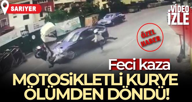 Sarıyer Reşitpaşa Mahallesi’nde önceki ay saat 13.30 sıralarında meydana gelen olayda, Semih Uzun idaresindeki 34 ELT 406 plakalı motor kurye, o esnada karşıdan gelen Ömer Işık Bozma idaresindeki 34 GT 1205 plakalı araçla kafa kafaya çarpıştı. Çarpmanın etkisiyle kurye yola savruldu. Kuryenin ölümden döndüğü anlar saniye saniye bir işyerinin güvenlik kamerasına yansıdı. Kazanın ardından kurye Semih Uzun, ihbar üzerine olay yerine gelen ambulansla Sarıyer Seyrantepe’deki Şişli Hamidiye Etfal Eğitim ve Araştırma Hastanesine kaldırılarak tedavi altına alındı. Yaralı kuryenin durumunun iyi olduğu ve hayati tehlikesinin bulunmadığı öğrenildi.