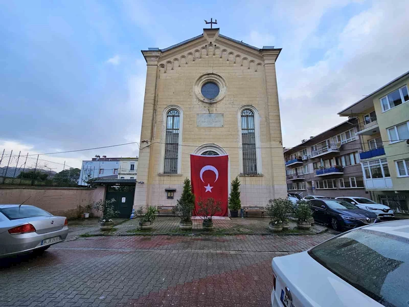 Sarıyer’de Santa Maria Kilisesi’nde dün Pazar ayini sırasında yaşanan ve 1 kişinin hayatını kaybettiği silahlı saldırı sonrası kilisenin girişine Türk bayrağı asıldı.